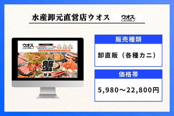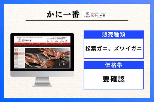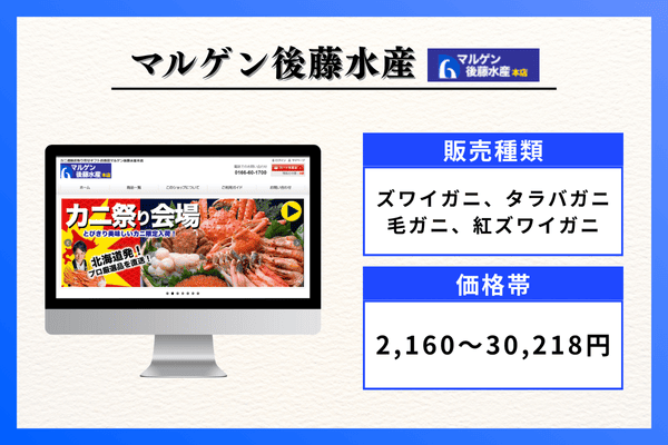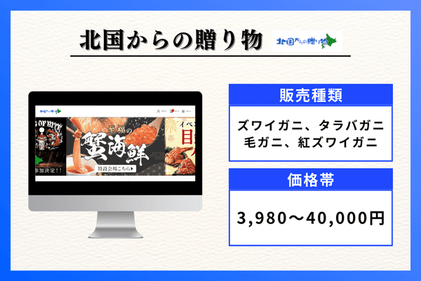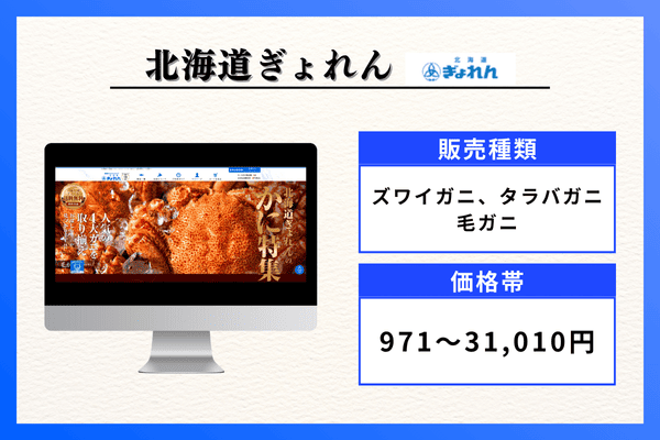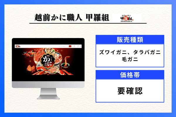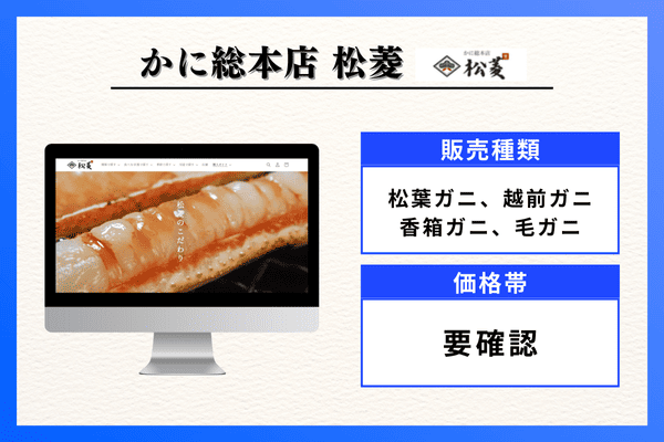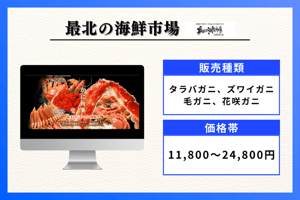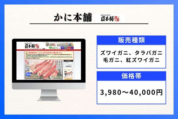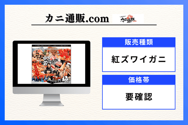 | 販売種類 | ズワイガニ、タラバガニ、毛ガニ、紅ズワイガニ |