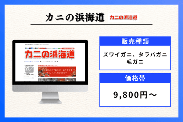 | 販売種類 | 毛ガニ、ズワイガニ、タラバガニ、花咲ガニ(全品訳なし) |
